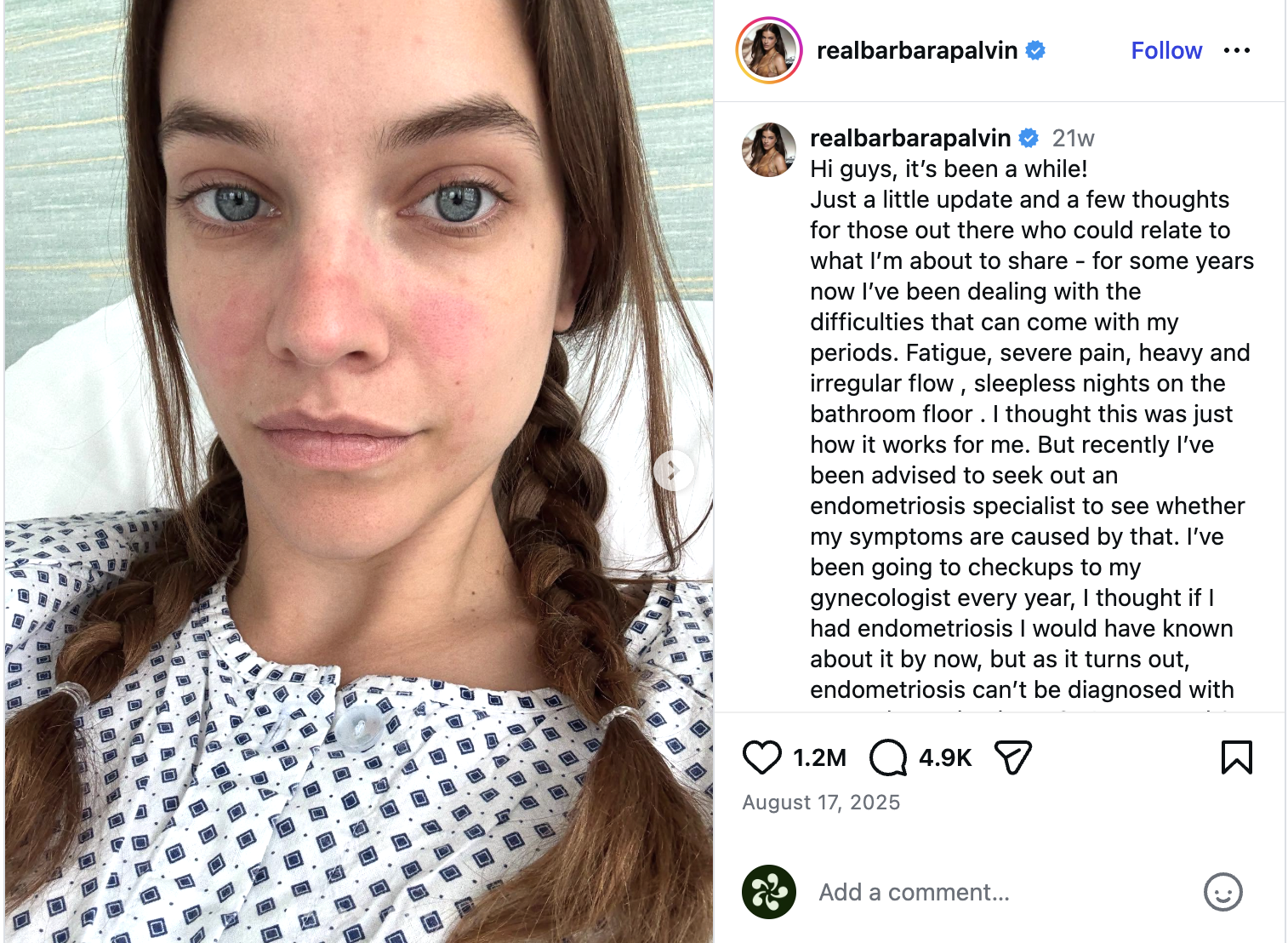 Advocacy is powerful. Community is powerful. And seeing yourself reflected in someone else’s story can make all the difference. With conditions like endometriosis and PCOS, women tend to live in chronic pain for years before receiving a diagnosis. For many, the journey to a diagnosis is filled with frustration, doubt, and even dismissal by medical professionals. When well-known women share their experiences, they help normalize what is so often navigated in silence, and push forward the collective call for better, more compassionate reproductive healthcare.